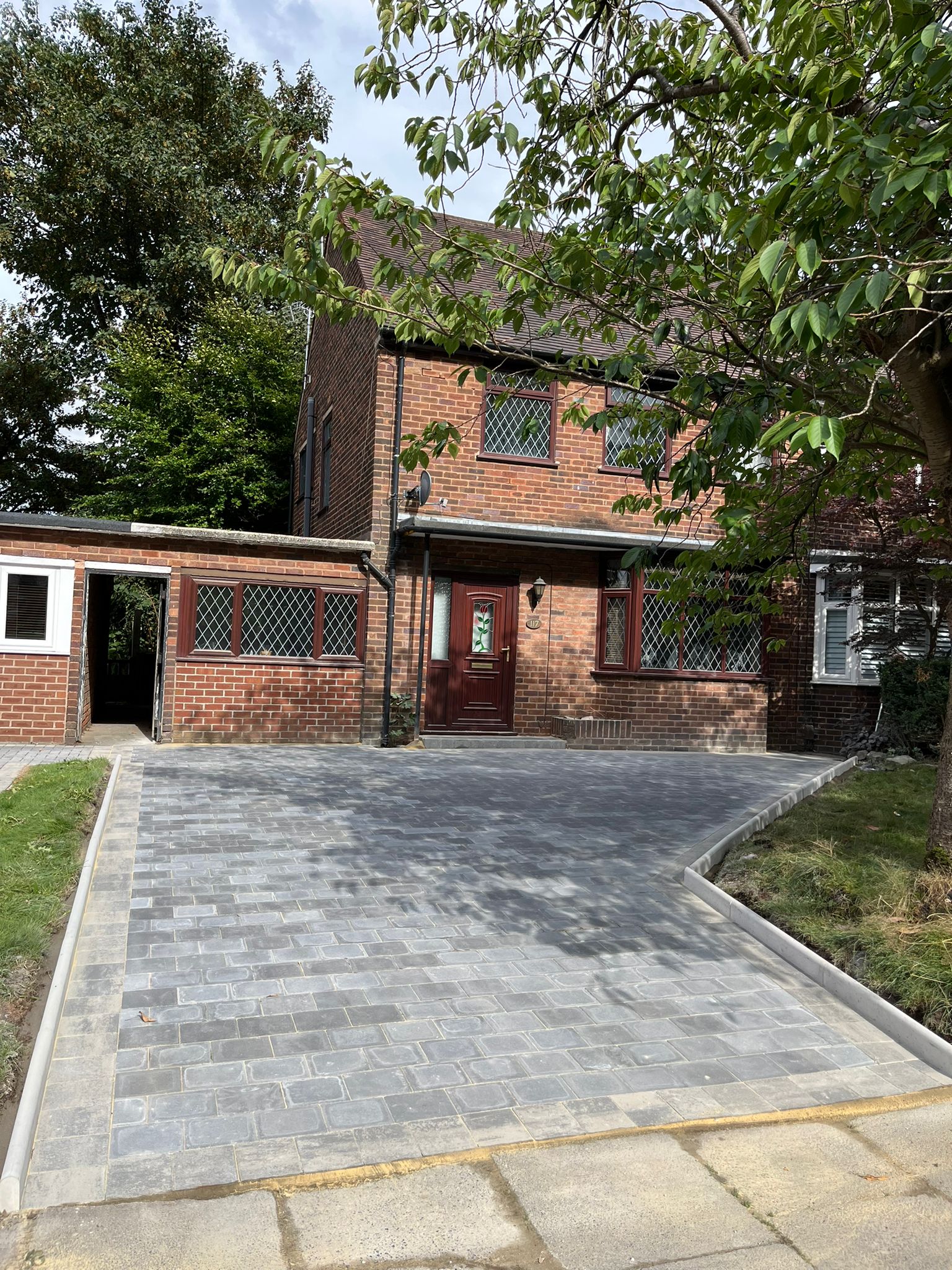The team headed to Leyland, Preston to install this slick driveway using Tobermore Shannon charcoal with slate borders.
