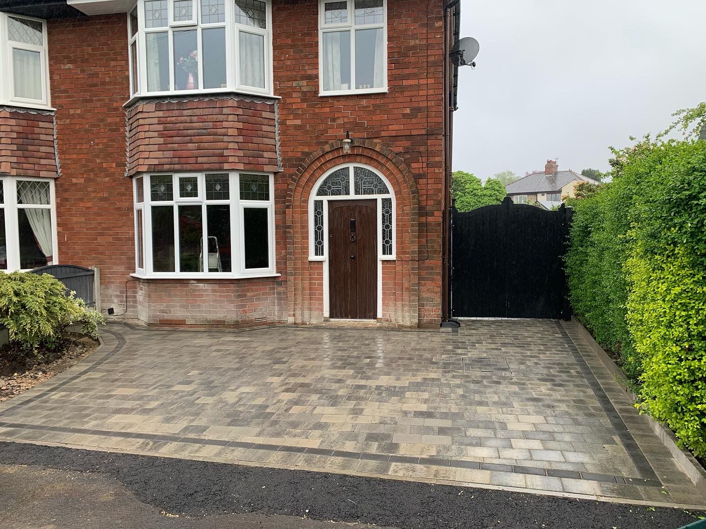 The team made the short trip to Penwortham in Preston to complete this Tobermore Pedesta slate block paved driveway. The installation included charcoal borders.
