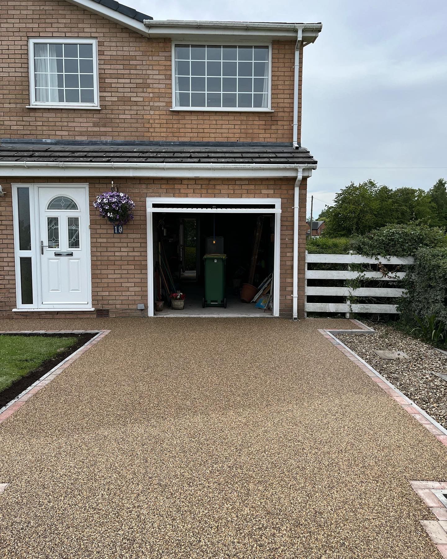 Our team travelled to Grimsargh in Preston to install this Cappuccino UV Resin driveway with Tobermore heather borders.