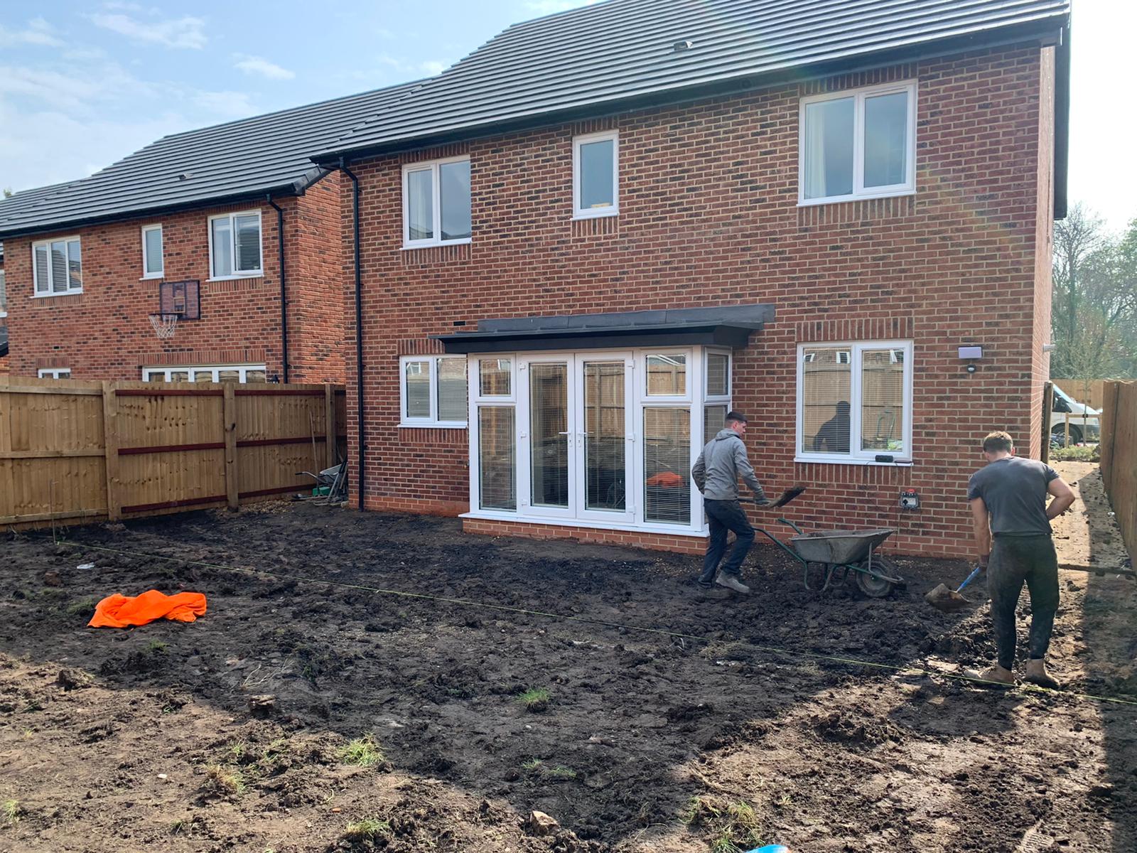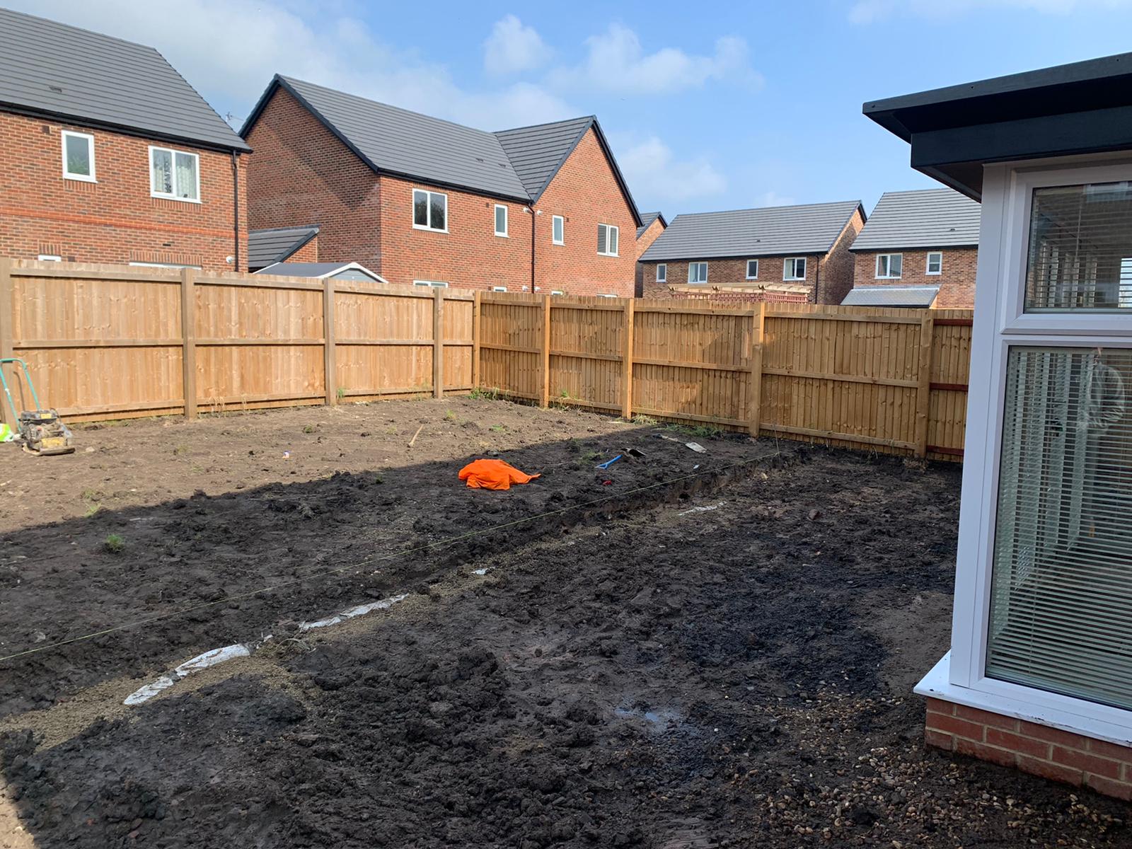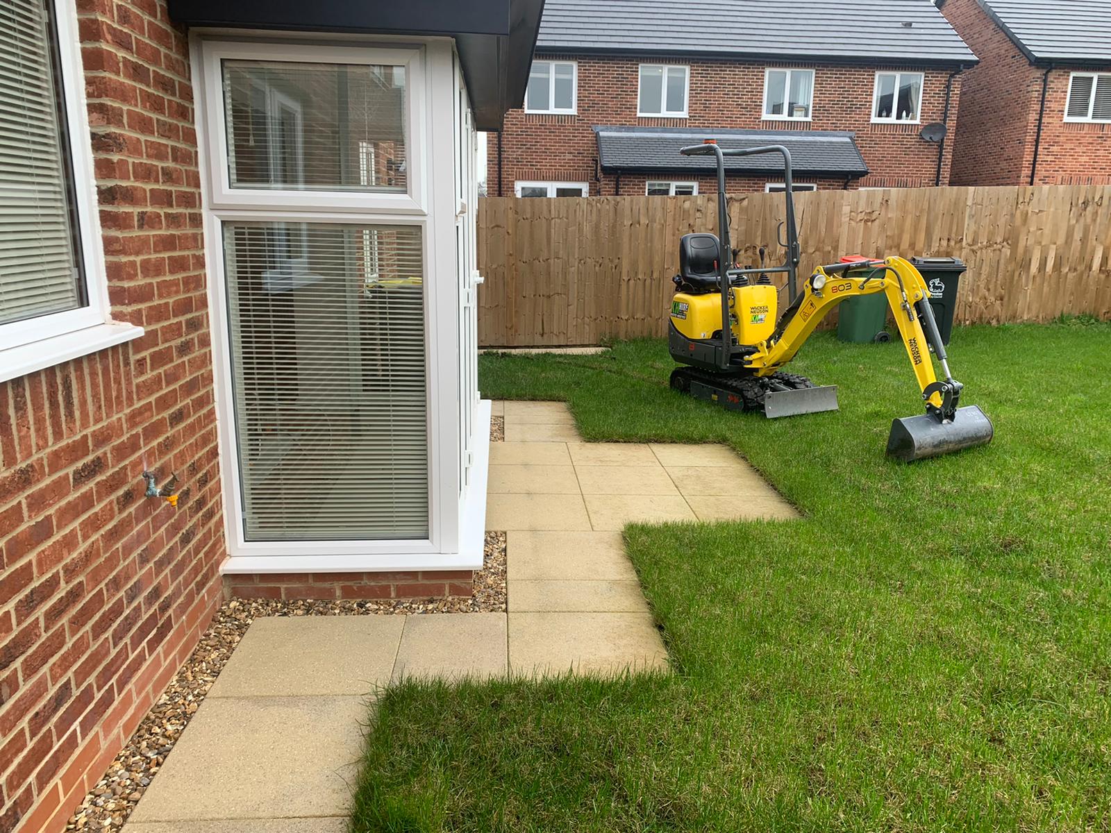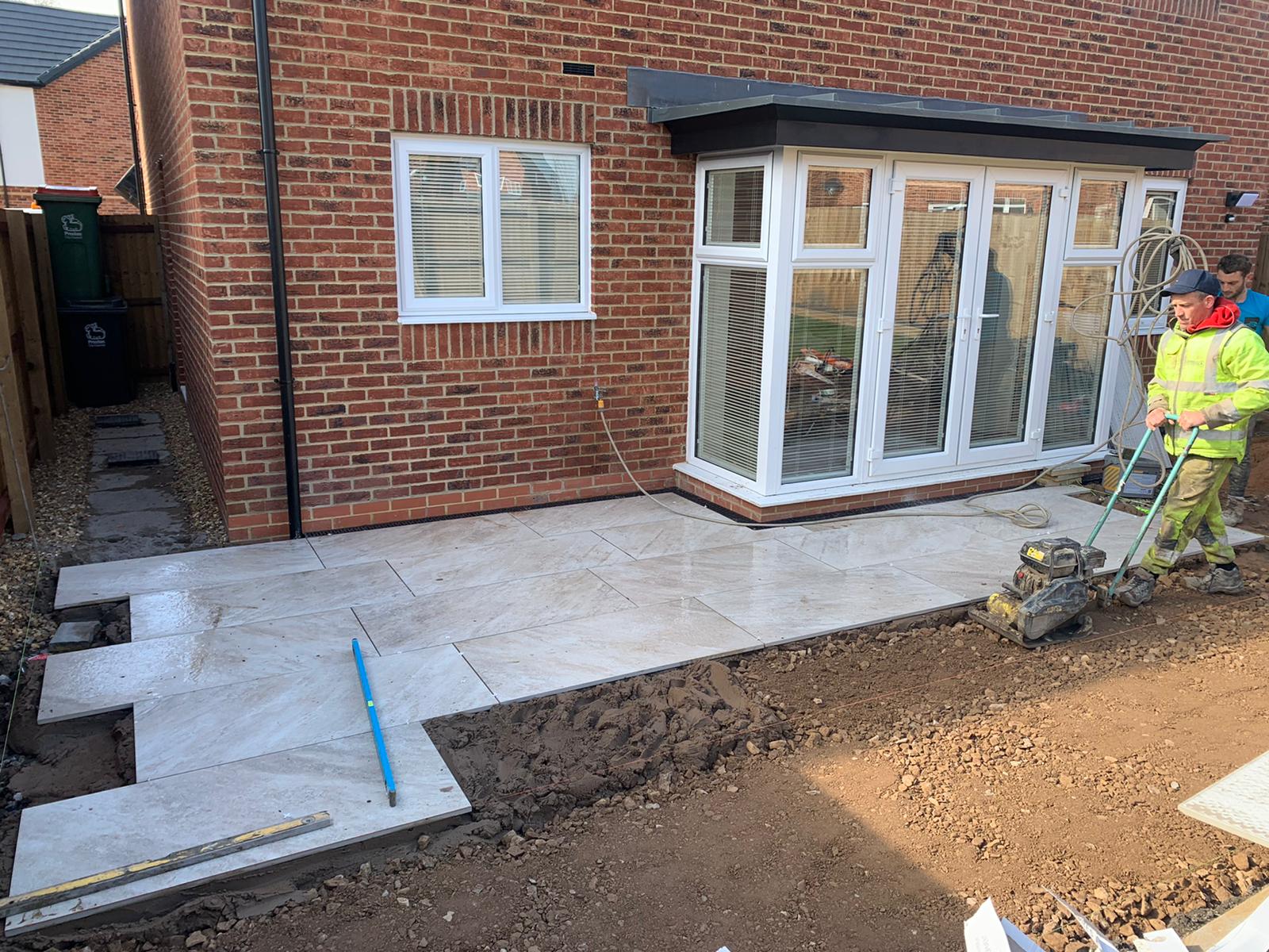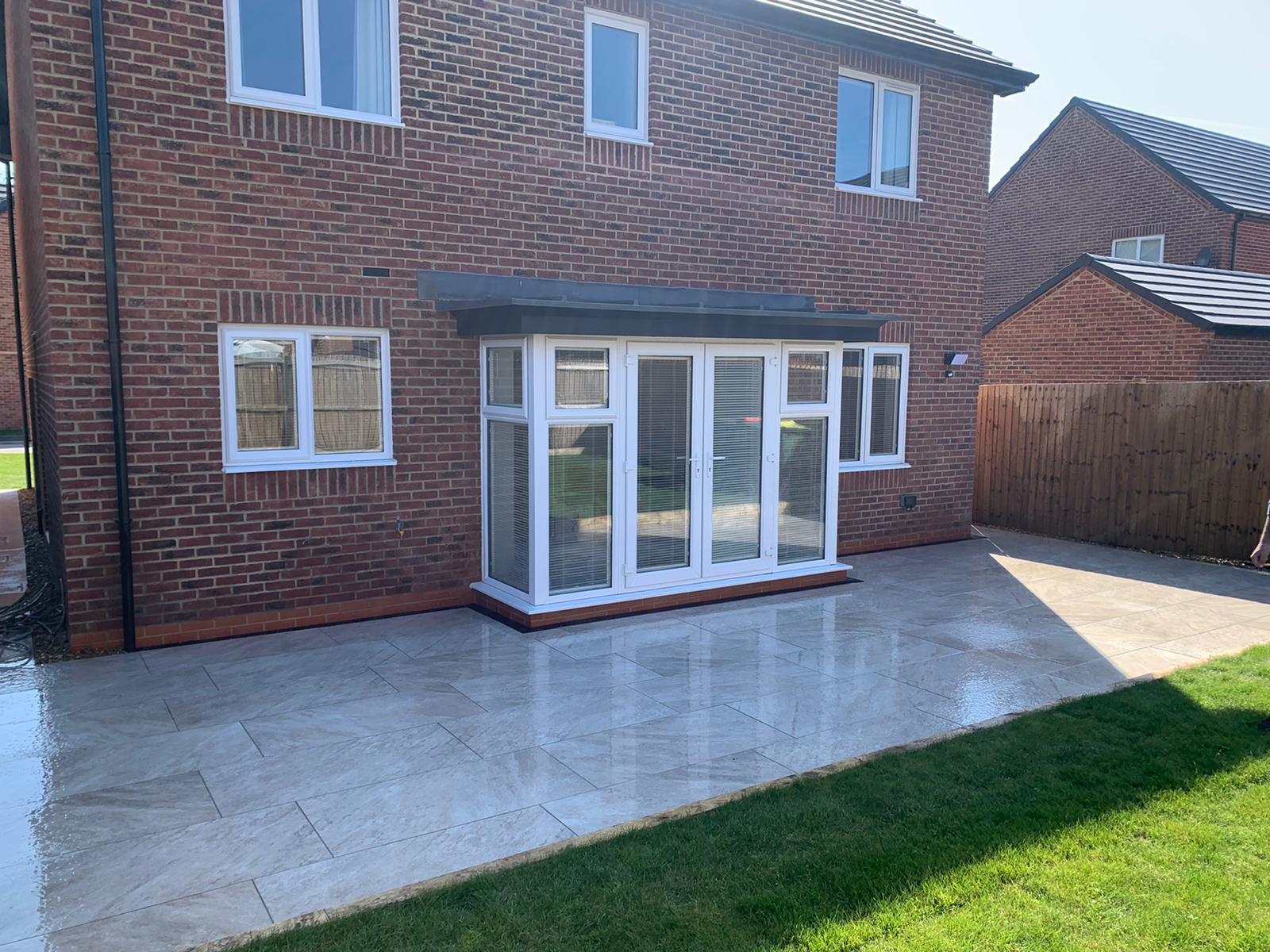 The next part of the installation was to replace the patio at the back of the house. The homeowners wanted part of the back garden removed to make way for a larger patio. As you can now see the porcelain patio is now laid down with a raised railway sleeper and looks extremely slick.