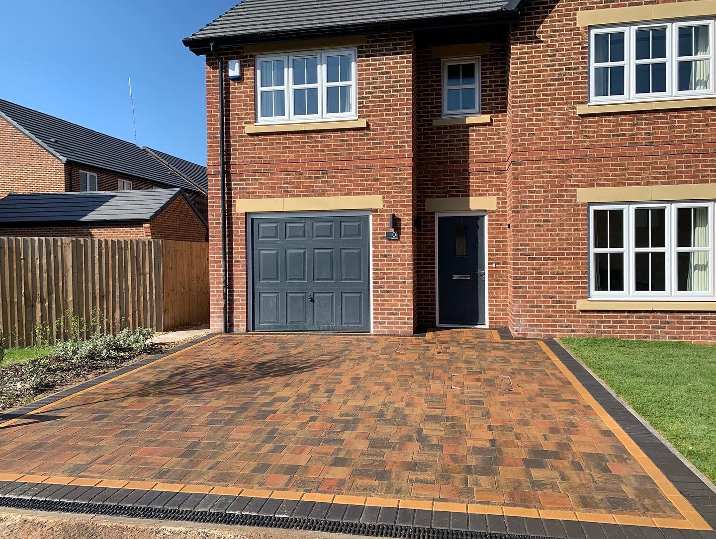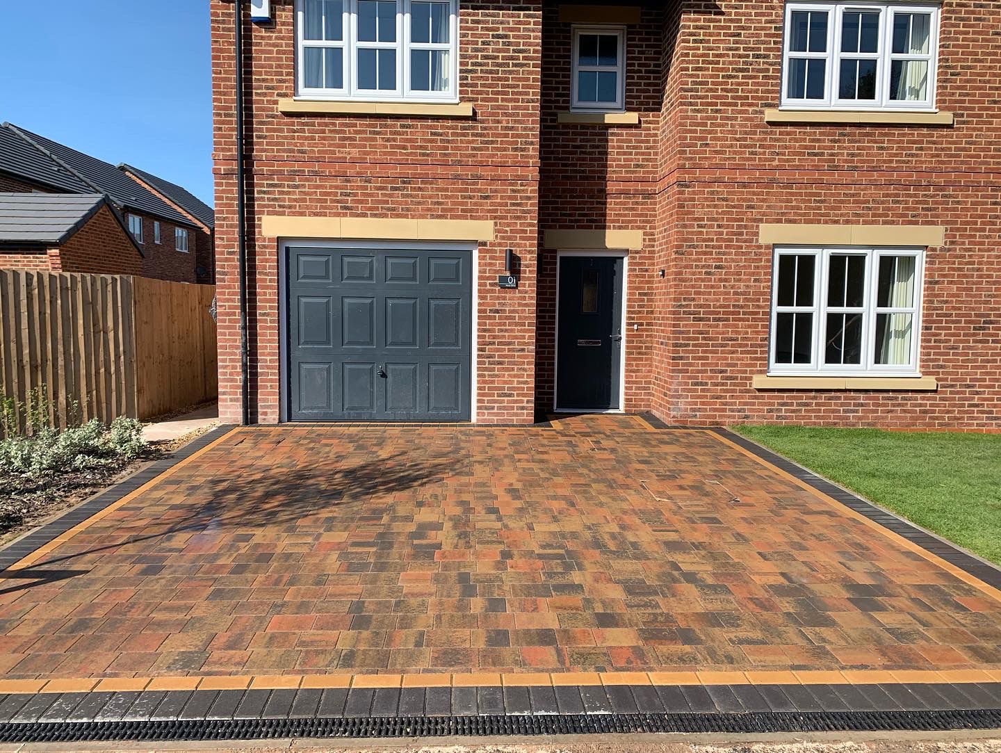 The team completed a job at the front and back of a home in Grimsargh, Preston. At the front of the house, we installed a lovely Tobermore Shannon Duo Block Paving driveway in heather with golden and charcoal pedesta borders.