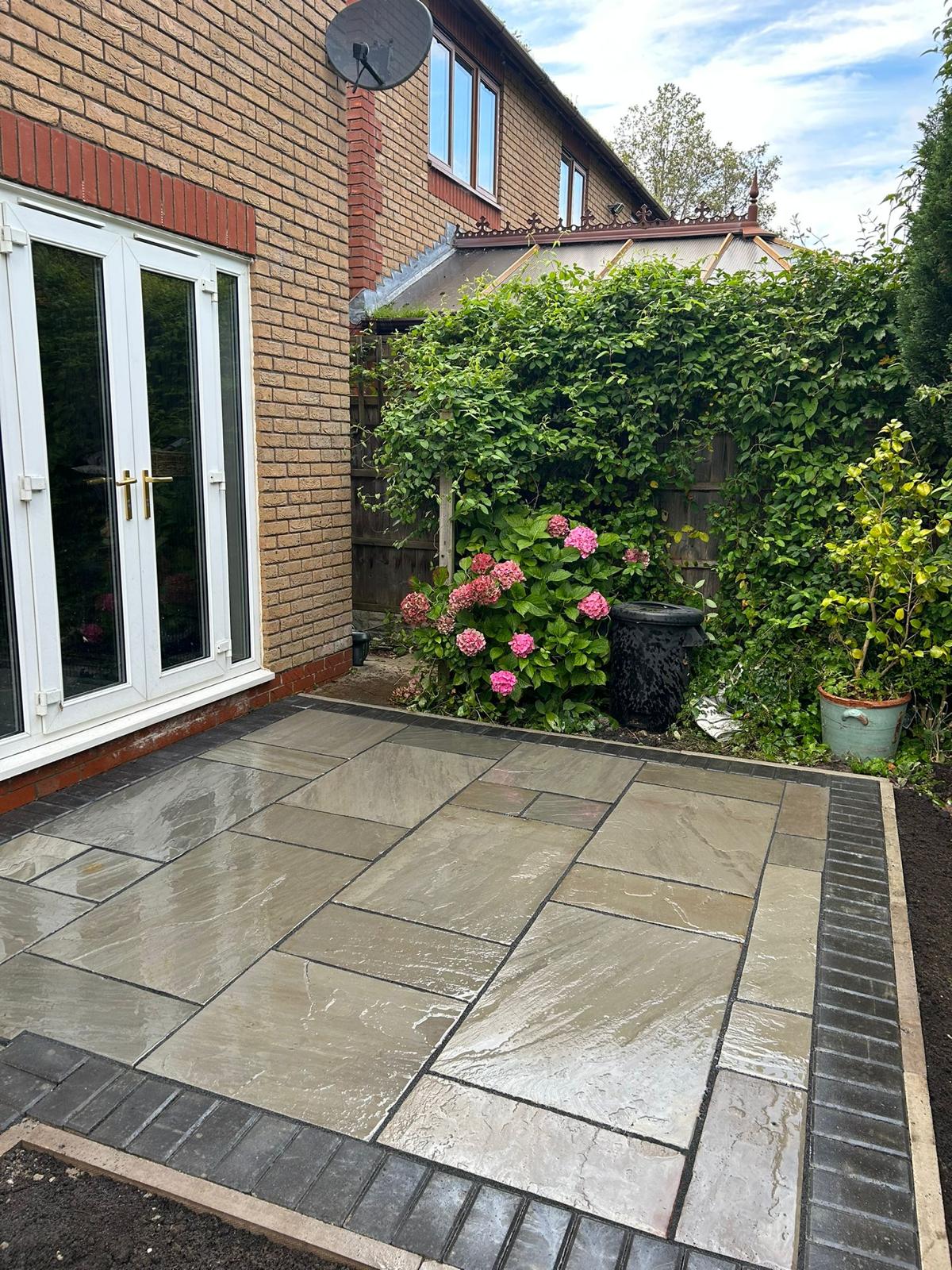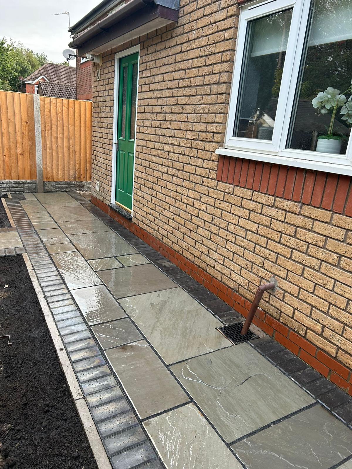 The team completed this Indian Sandstone installation in Banks, Southport. This beautiful choice of material has created a patio area that exudes natural beauty and durability, perfectly complementing the exterior of this home.