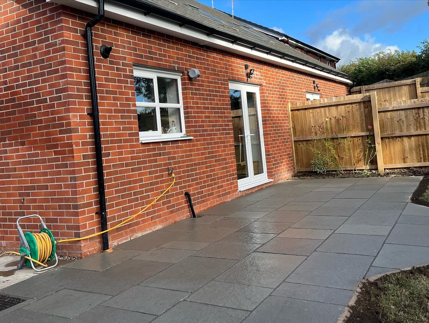 The team headed to Forton in Lancaster to complete this stunning Kota Grey limestone patio. The Kota Grey limestone patio adds a touch of sophistication and elegance to this home.
