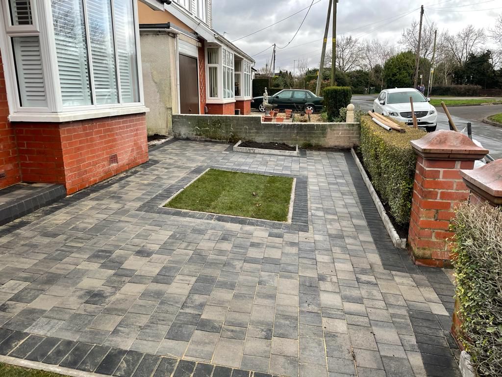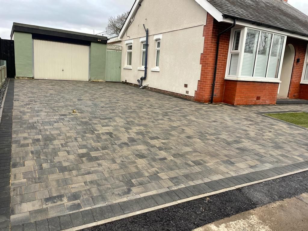 The team made the short trip to Bamber Bridge, Preston to complete this Petra ash block paved driveway with charcoal borders.