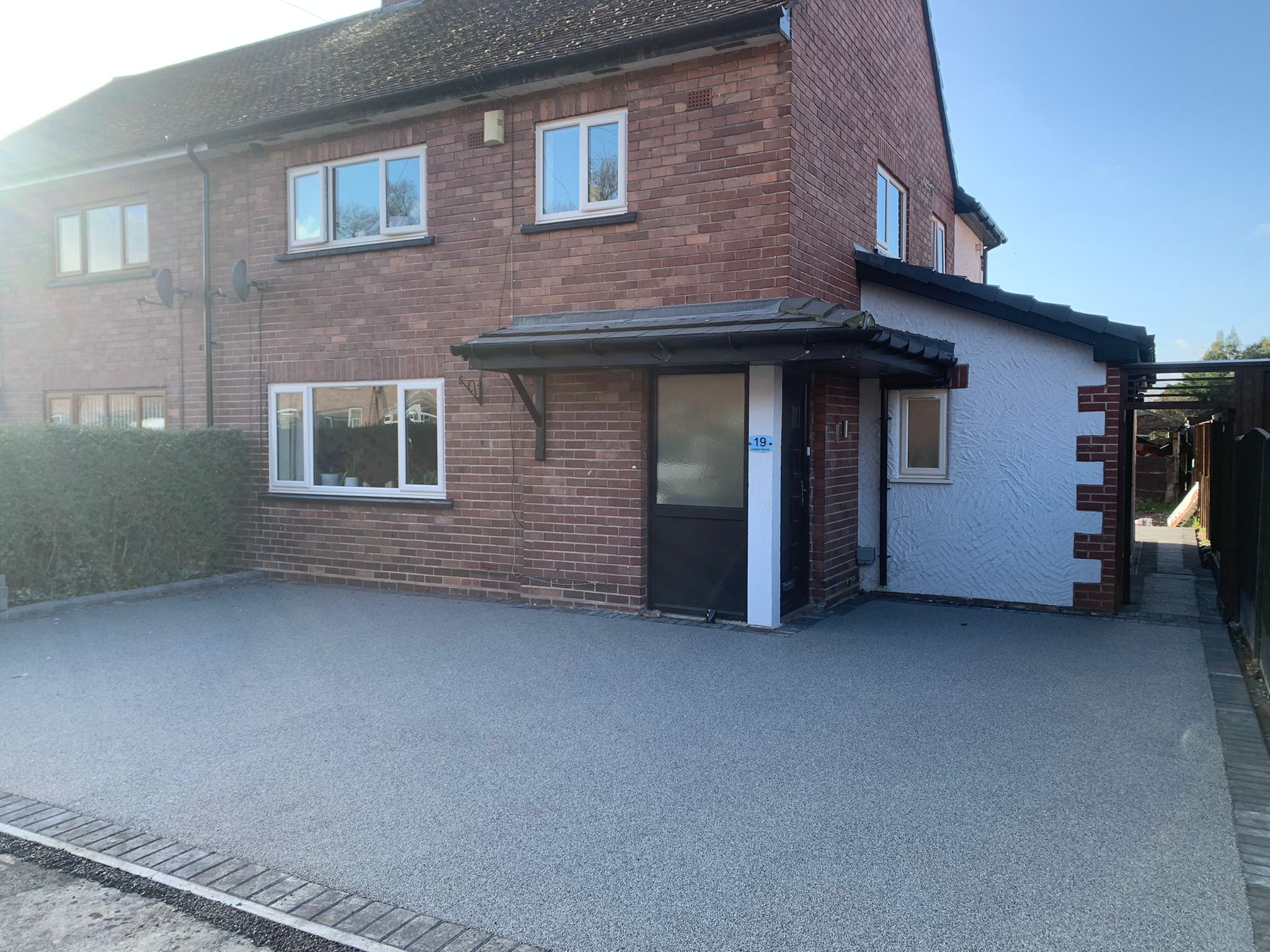 Take a look at this Platinum UV resin driveway we installed in Leyland. This driveway was put in place with charcoal Pedesta borders and KS Curbs.