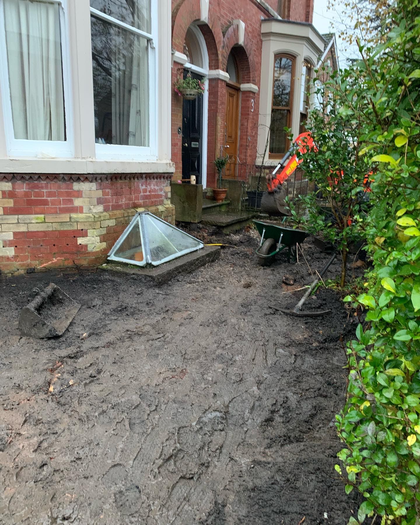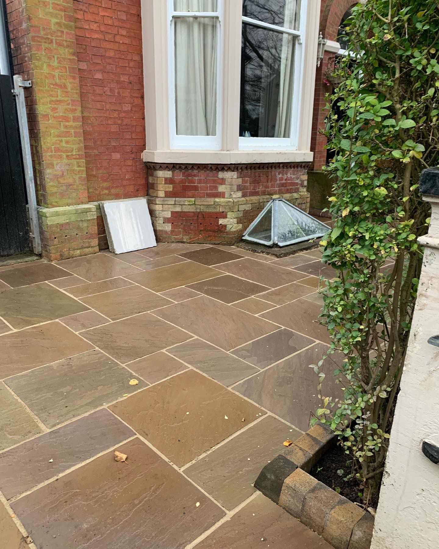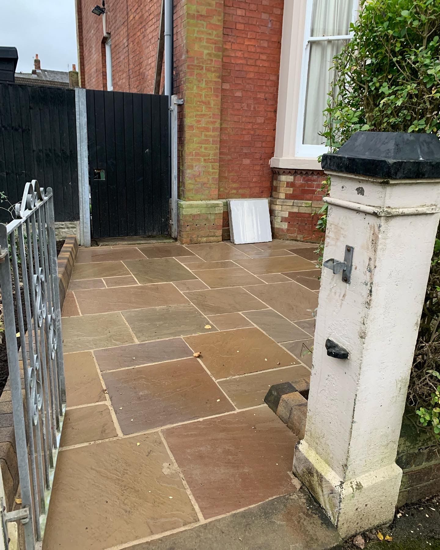 The team headed to Ashton, Preston to install a block paved driveway with bracken KL curbs Sweet Pea UV resin bound and York Green Indian Sandstone.