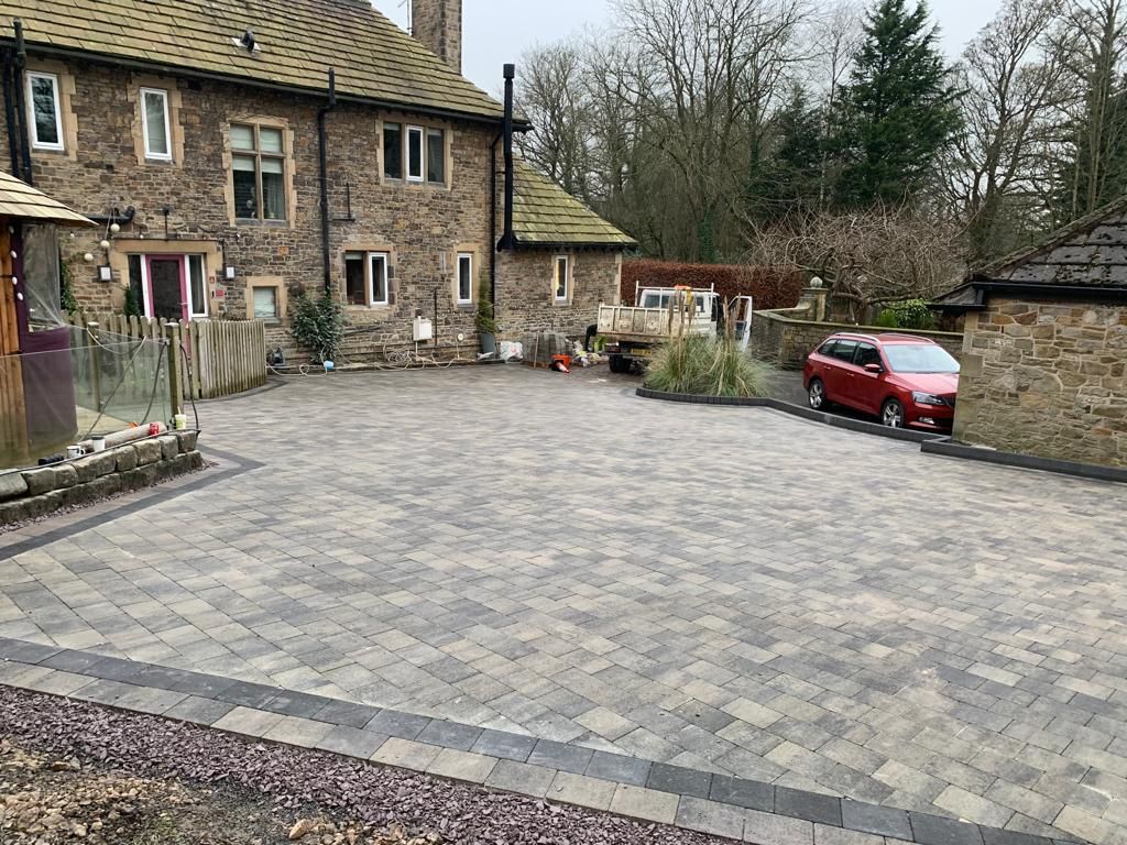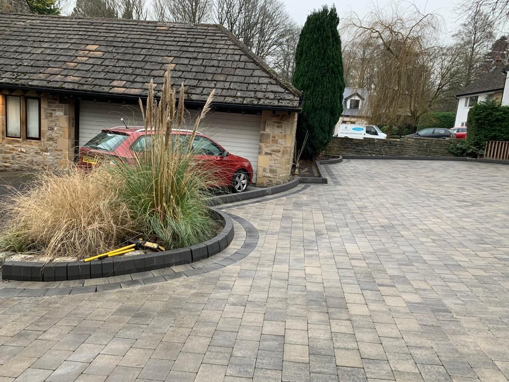 Our team installed this gorgeous driveway in Whalley, Clitheroe using Tobermore Shannon slate with charcoal borders and KL curbs.